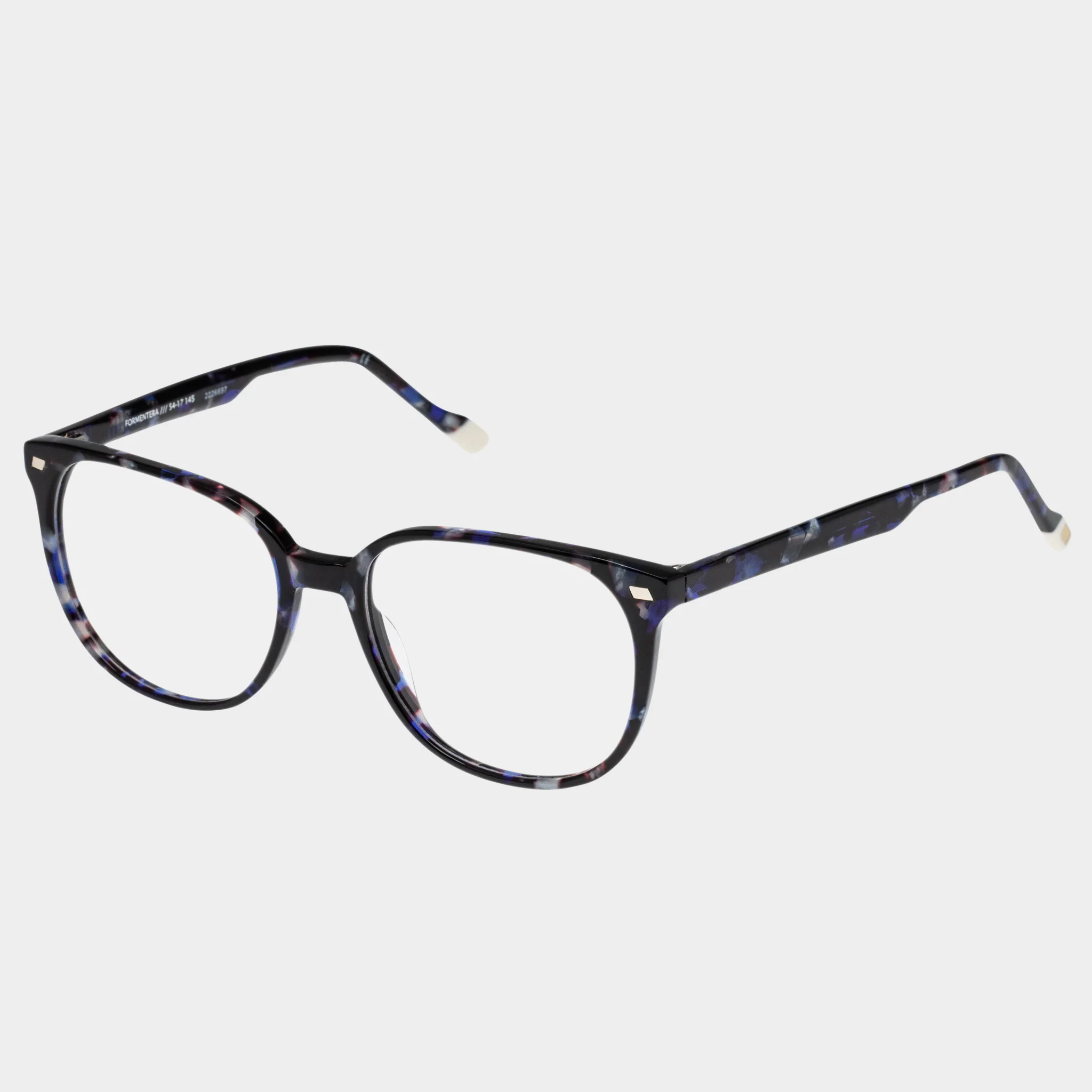 Reworking the classic round silhouette proportions, FORMENTERA offers a midsize fit with a polished feminine esthetic. The style is finished with discreet flag stripe rivet detailing on each end piece.