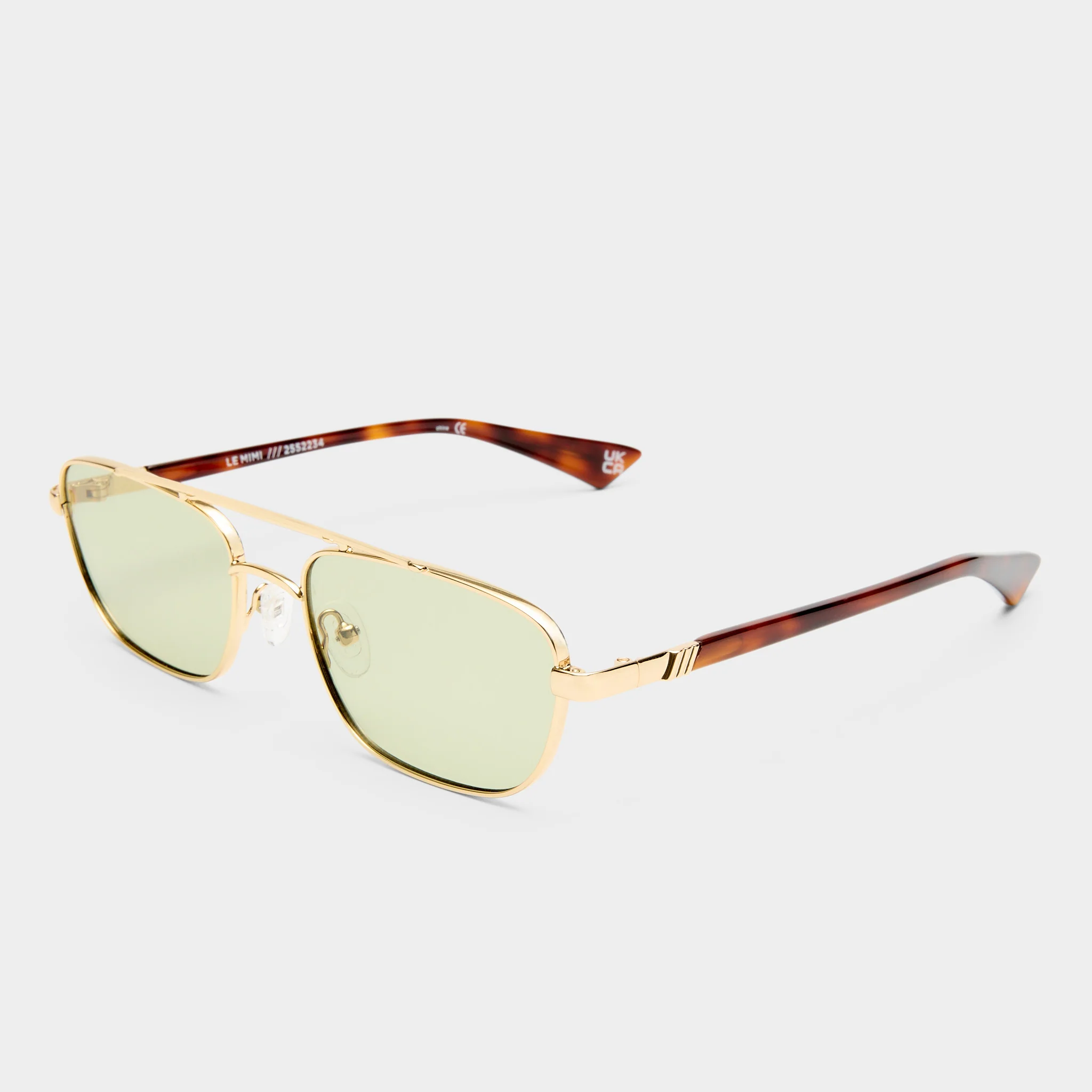 • Finished in a gold frame with moss mono lenses.
