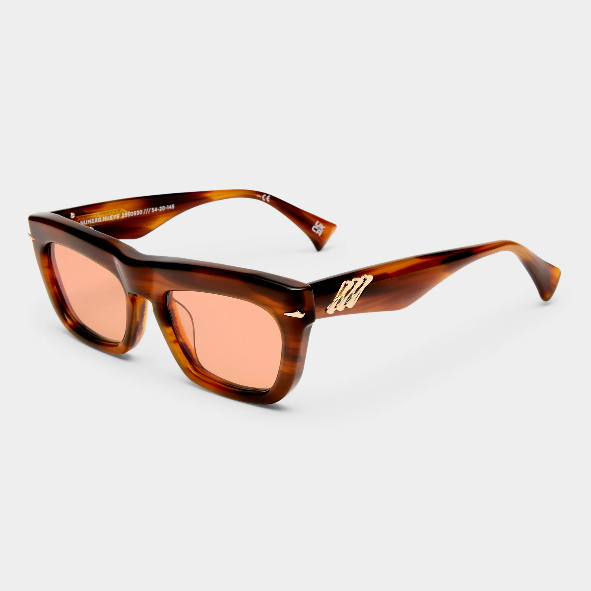 With striking lines and confident proportions, our NUMERO NUEVE sunglasses deliver a bold take on the modern rectangle silhouette. Made from bespoke custom 8mm & 6mm acetates, this frame highlights delicate chamfering detail meticulously added to every aspect of the frame, providing a soft and rounded luxurious, hand polished look and feel. Each pair is finished with Le Specs signature three dimensionally crafted infinity flagstripe metal decal and iconic single flagstripe inspired rounded rivet offering an unparallel level of sophistication.